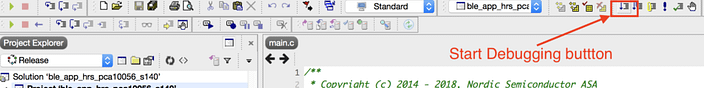 - When the application is flashed to your development kit, it will stop at a breakpoint in main():