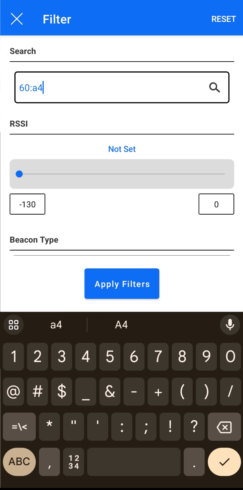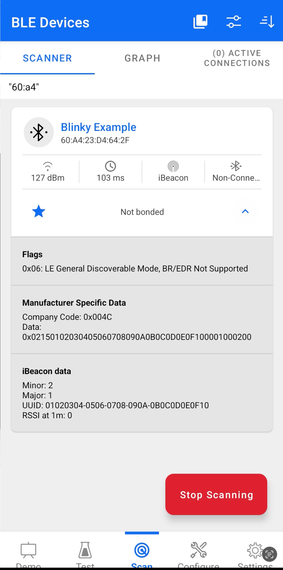 Hit Apply Filters and you should now see your device discovered and shown with the correct iBeacon data fully parsed: