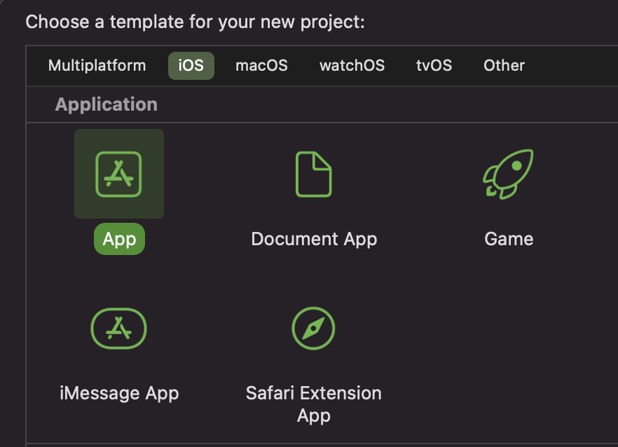 As always, the first thing to start off on an iOS app is to create a new project in Xcode. For the template, select iOS and then App from the Application section