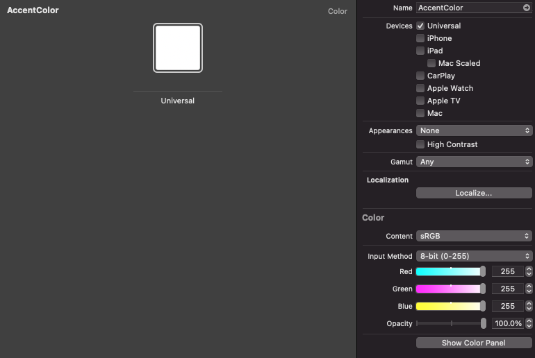 It shows two color squares that are to be used in Light and Dark modes. Let’s define the same color for both.