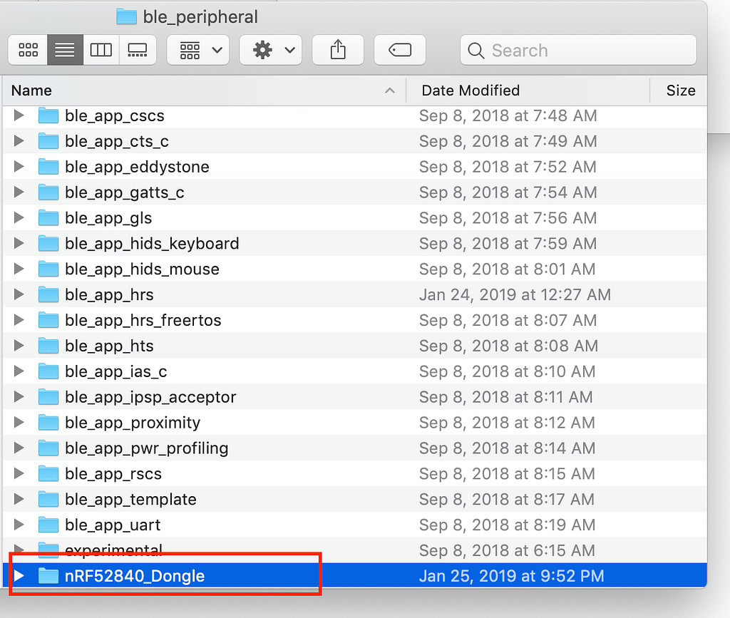Note: remember that the nRF52840 USB Dongle does not have onboard debug capabilities, so I recommend that you verify your application as much as you can on the nRF52840 development kit before moving it over to the dongle.