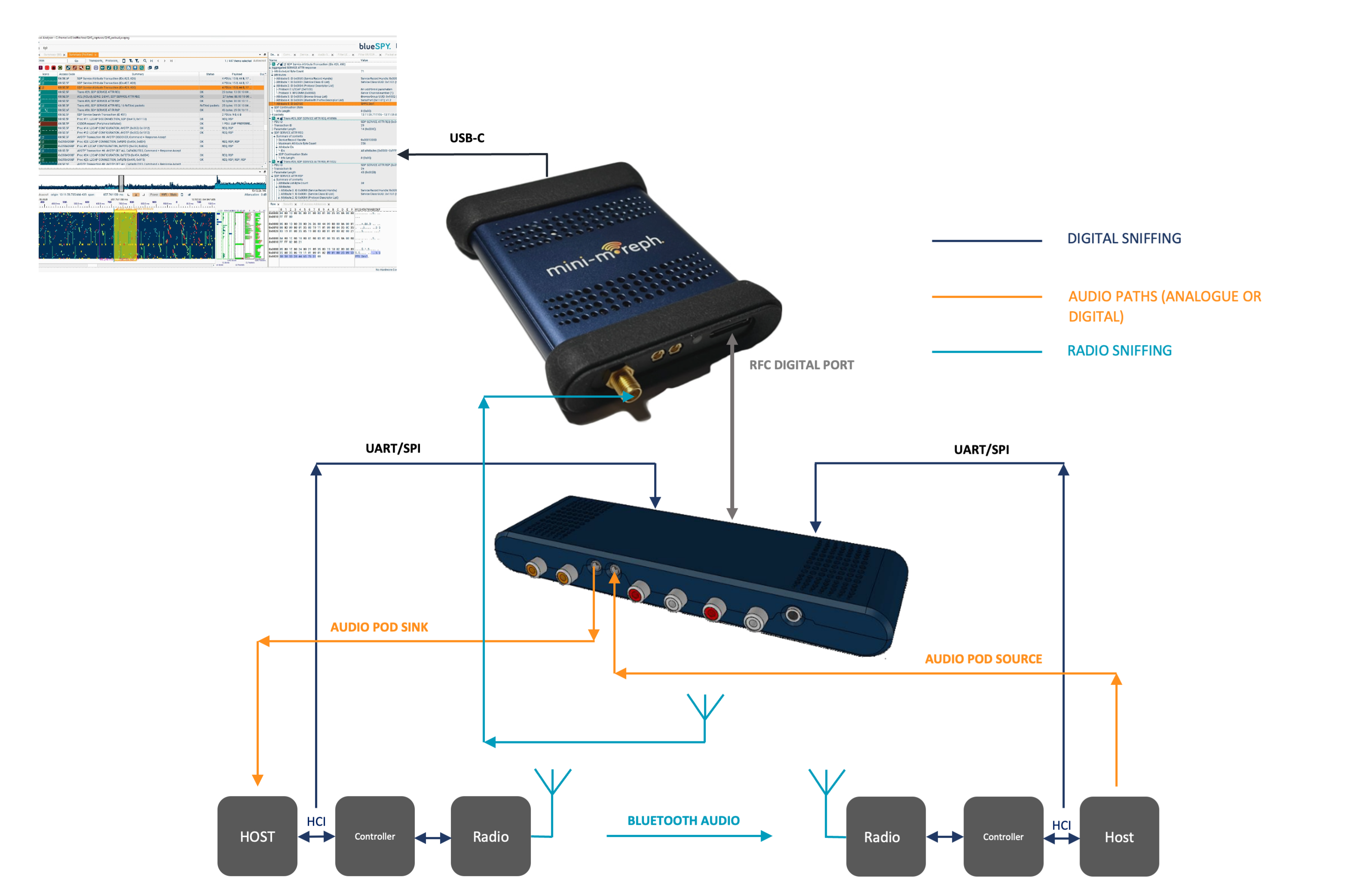 For example, pairing one of the RFcreations Bluetooth sniffers (mini-moreph or moreph30) with an audiopod allows you to analyze in real-time the various audio latency measurements of your setup.