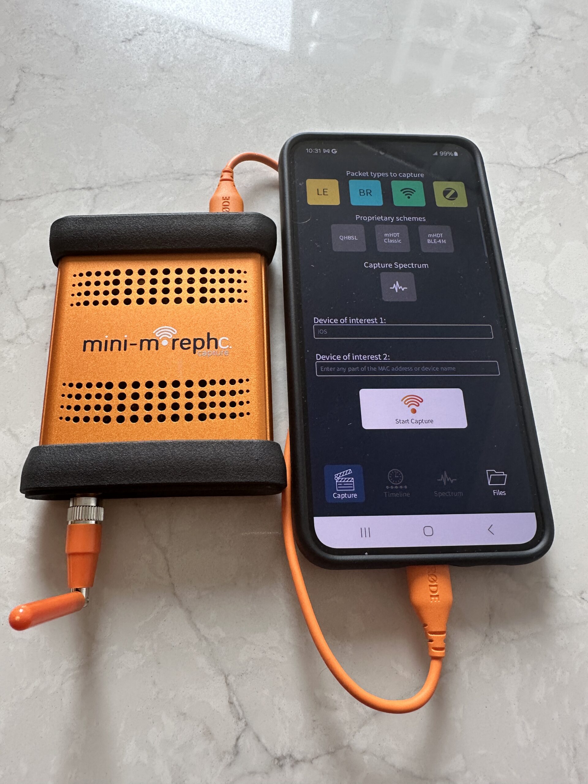 When debugging Bluetooth Low Energy (BLE) devices, flexibility is key. Traditional low-cost Bluetooth sniffers often require a connection to a PC, making field testing inconvenient. In contrast, a professional BLE sniffer like the RFcreations mini-moreph supports connecting directly to an Android smartphone, removing the need for bulky hardware setups and enabling convenient packet capture on the go.