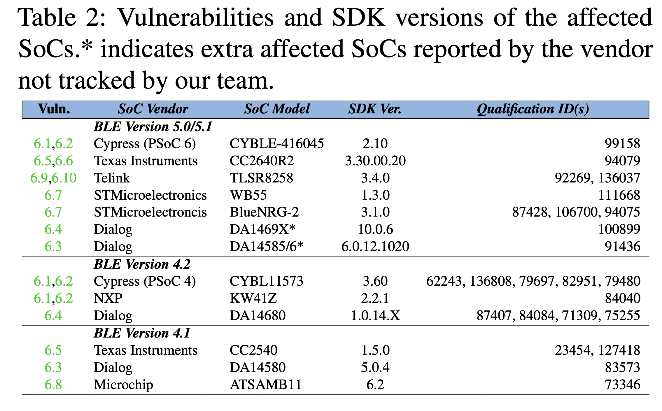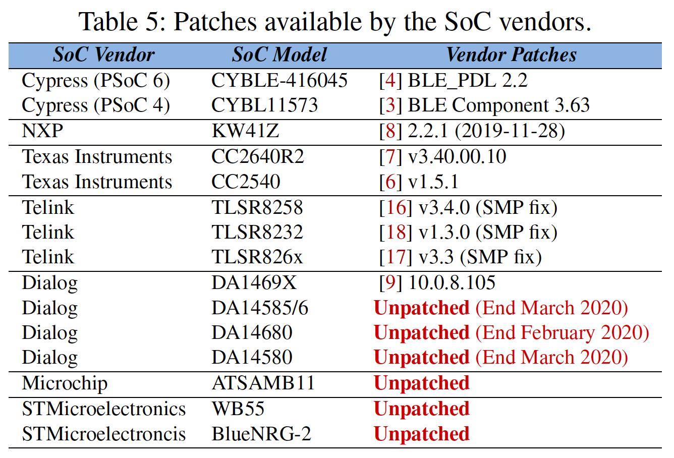 SoCs from seven vendors are listed in the research paper: